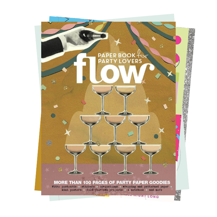 Die Flow Book for Paper Lovers – Edition Party ist ein Sonderheft ganz rund um das Thema Feiern. Es ist in sechs unterschiedliche Partywelten unterteilt – Geburtstagsparty, Achtziger-Jahre-Party, Picknickparty, Cocktailparty, Glamourparty und Tierparty – gestaltet von sechs Illustratorinnen mit ganz eigenem Stil. Darin findest du Partyhüte zum Ausschneiden, Girlanden und Tortenaufsätze zum Selbermachen, Einladungen, Geschenkgutscheine, Bestecktaschen und vieles mehr, was deine Feier besonders macht.